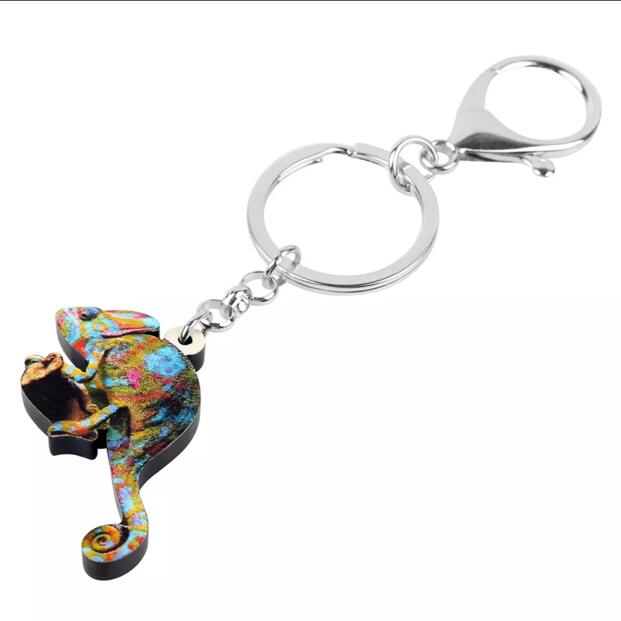 カメレオン キーホルダー カメレオングッズ 爬虫類 アクリル 野生動物 種別 アニマル雑貨 オーナーグッズ かわいい 輸入 キーチェーン プリント